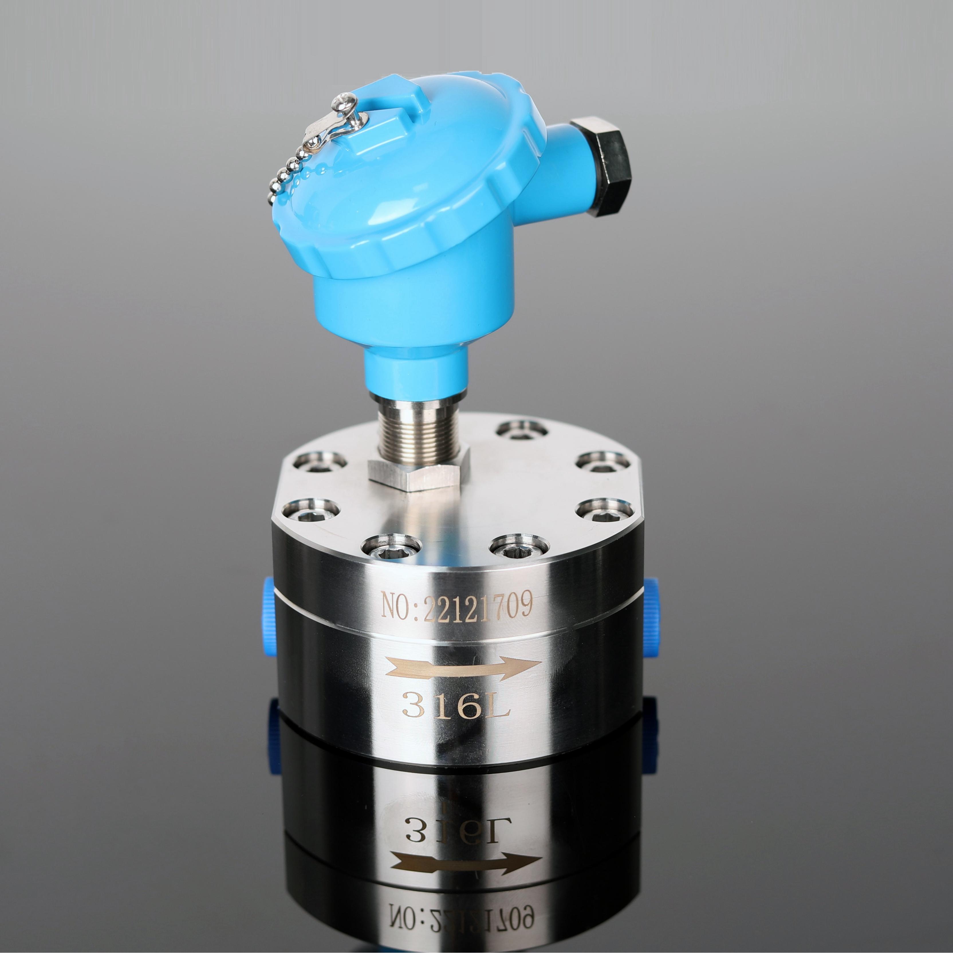 ?根據(jù)齒輪馬達原理研發(fā)的一種新型容積式流量計,用于精密的連續(xù)或間斷的測量管道中液體的流量或瞬間流量,適合于重油、聚乙烯醇、樹脂等粘度較高介質(zhì)的流量測量,微小流量即可準確計量。